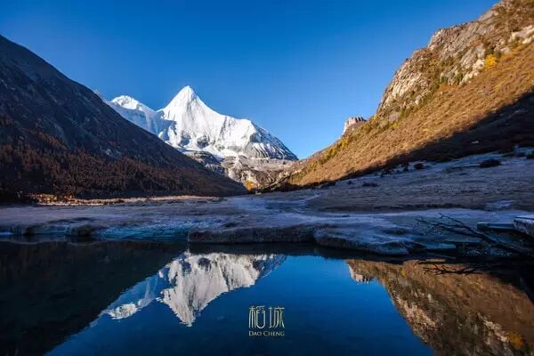央邁勇,洛克說她是最美的山峰。這座神山比較難見到。最快的方式是從沖古草坪坐電瓶車到洛絨牛場。這樣,卻容易錯過與央邁勇一點點接觸的奇妙瞬間。那像一把兵器的雪山山頂倒映在草地的溪水裡,周圍是五彩的密林,說天堂一點也不為過。